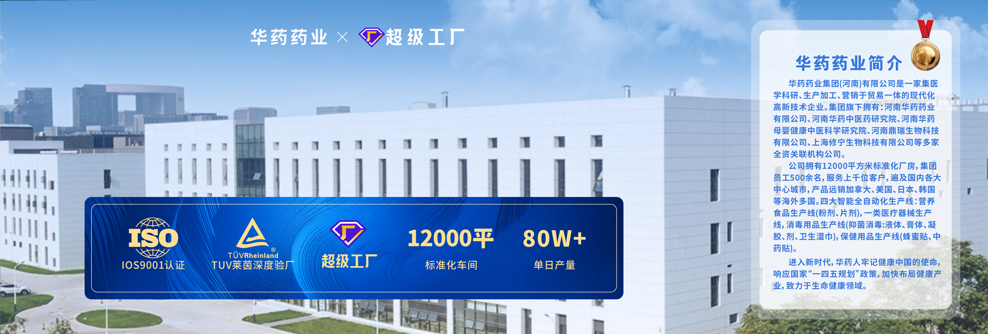 河南華藥集團(tuán)是一家集研發(fā)、生產(chǎn)、加工、銷售于一體的現(xiàn)代化高新技術(shù)企業(yè)。集團(tuán)旗下?lián)碛泻幽先A藥藥業(yè)有限公司、上海修寧生物科技有限公司、河南鼎瑞生物科技有限公司三家全資子公司。華藥集團(tuán)先后創(chuàng)立了“華藥漢本”、“華藥帝龍”、“修寧康”、“仁和泰康”、“信爾康”、“豫醫(yī)古方”、“汐博士”、“HYHB”、“華育慧寶”等多個(gè)知名品牌。生產(chǎn)線涵蓋粉劑、片劑、液體、蜂蜜貼、膏藥貼劑等五大生產(chǎn)線。現(xiàn)有產(chǎn)品100余..···
